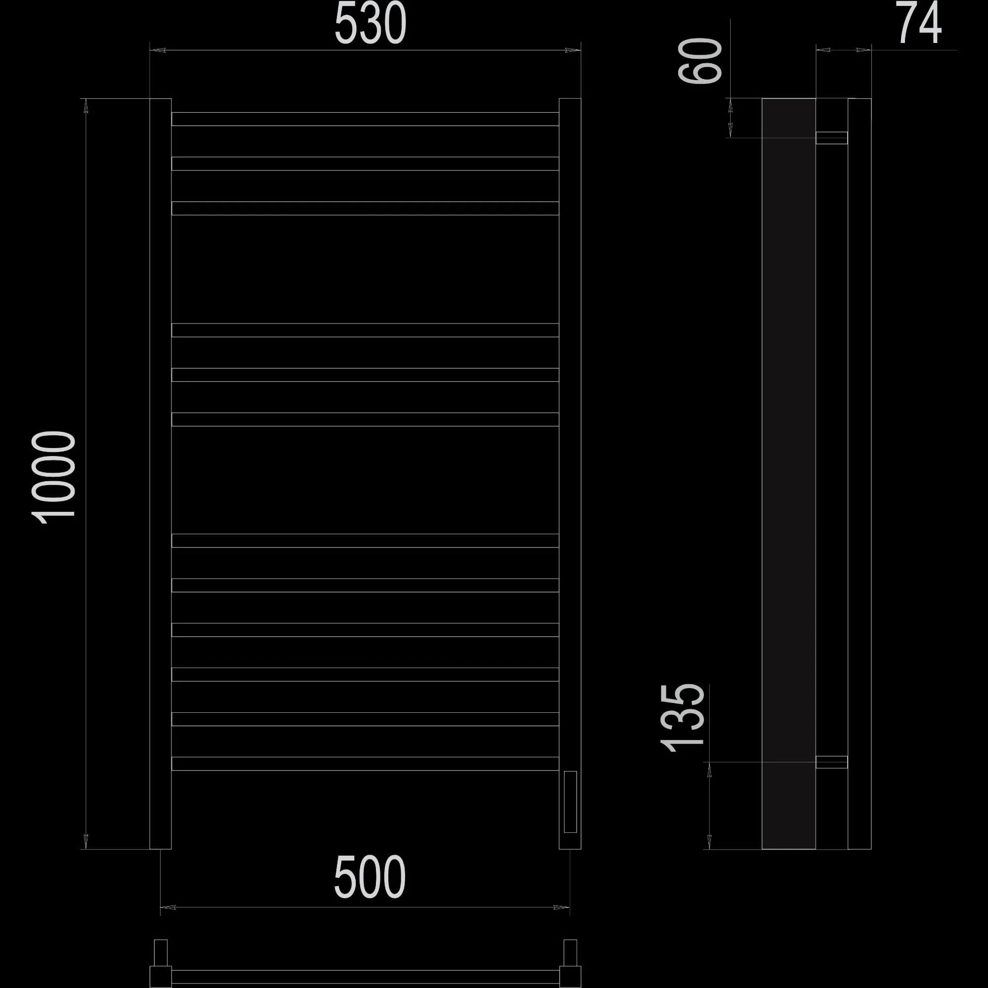 Полотенцесушитель электрический Terminus IDEAL ЭПС Сицилия Электро П12 500×1000, 1000 мм высотой, 530 мм шириной, 12 перекладин, нижнее подключение, хромированный
