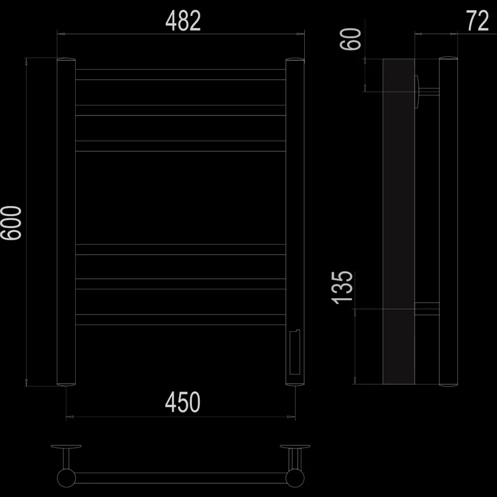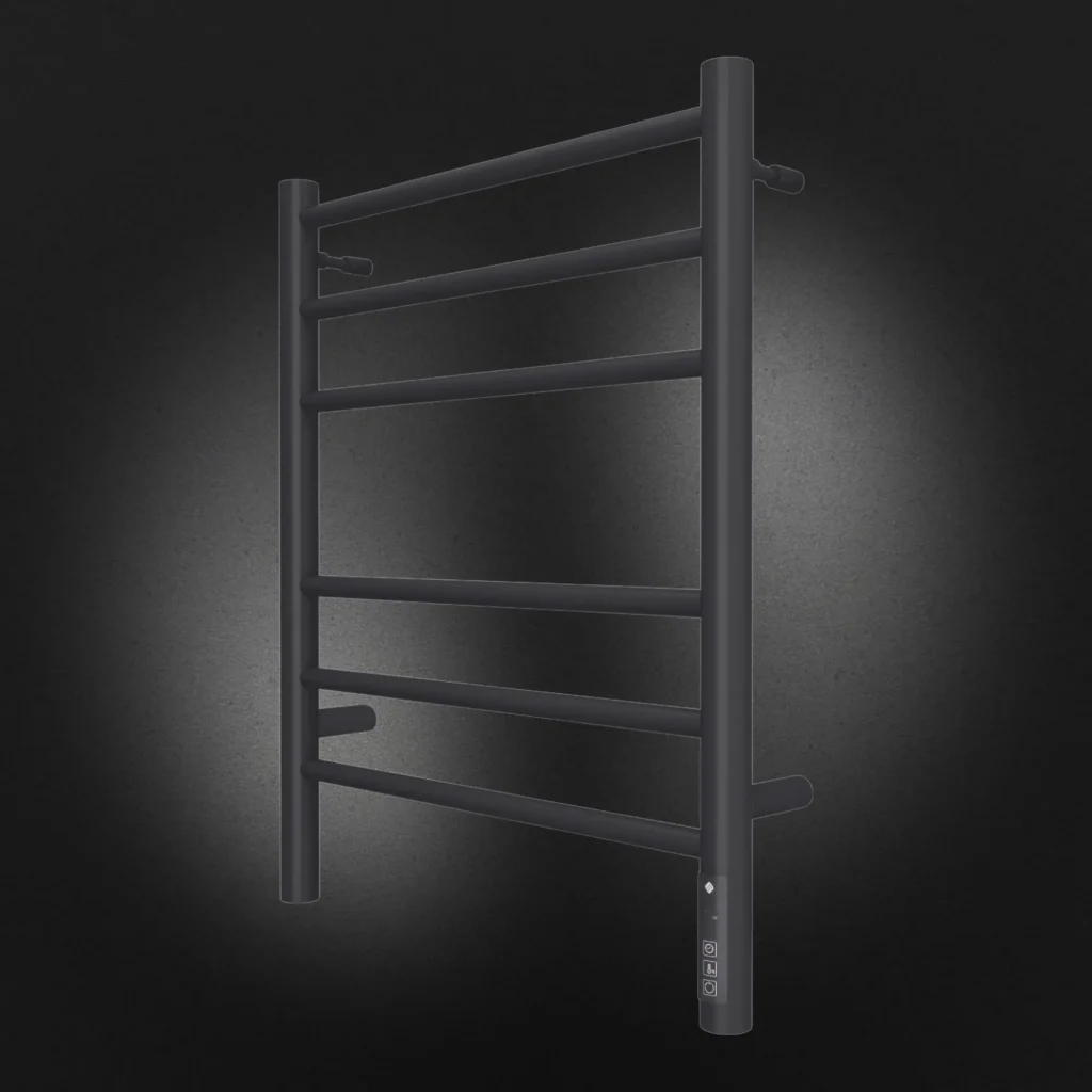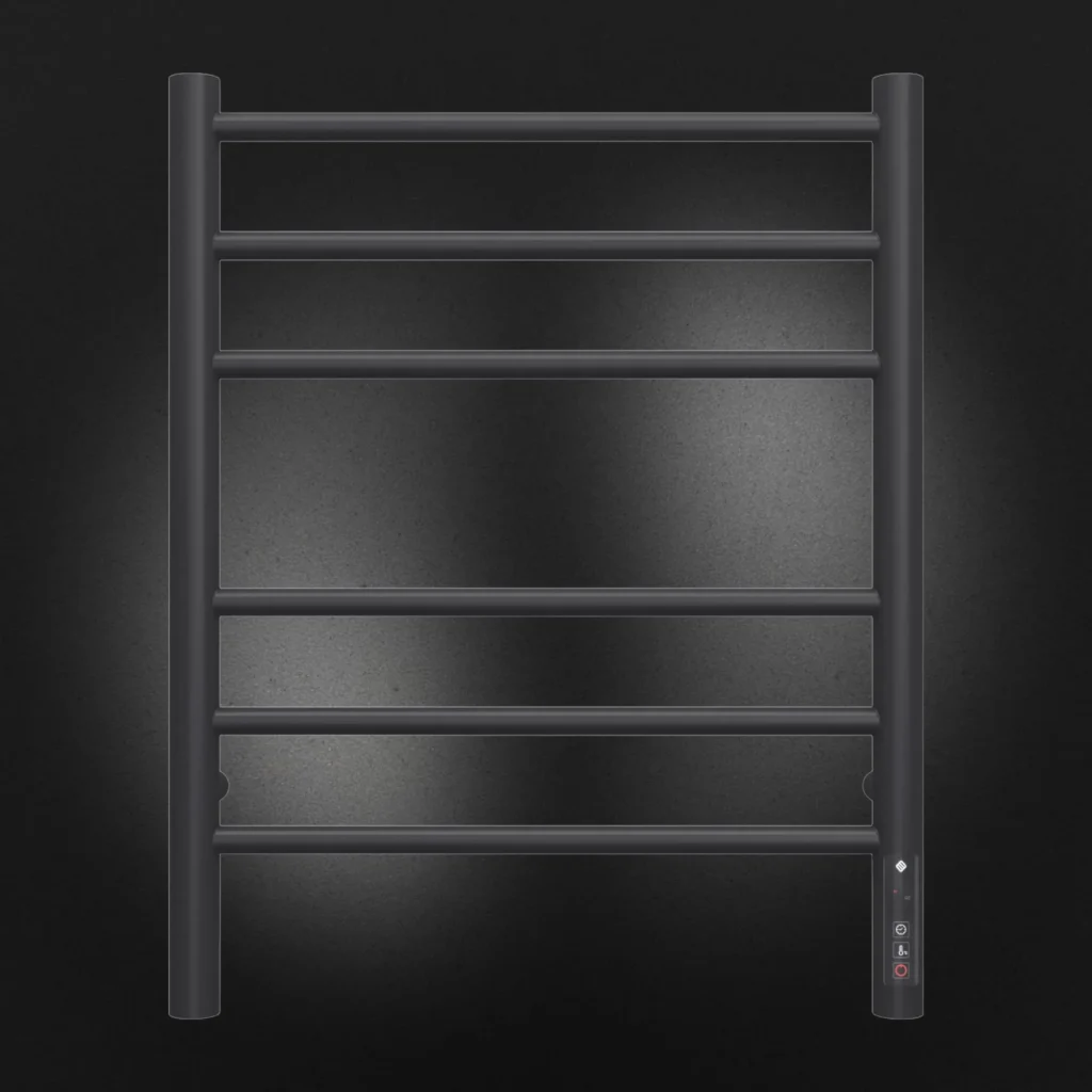 Полотенцесушитель электрический Terminus TREND ЭПС Аврора Электро КС П6 450×600 чёрный муар, 600 мм высотой, 482 мм шириной, 6 перекладин, нижнее подключение, чёрный муар