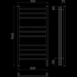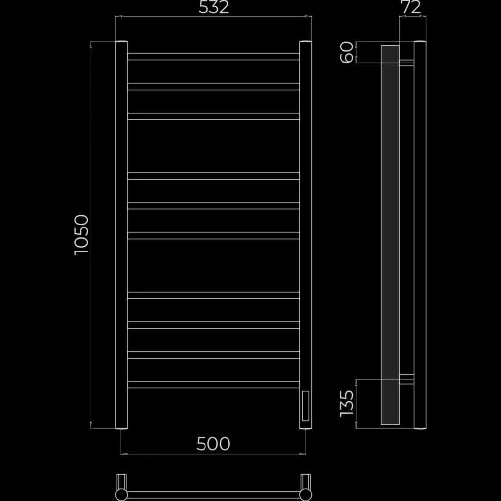 Полотенцесушитель электрический Terminus TREND ЭПС Аврора Электро П10 500×1050, 1050 мм высотой, 532 мм шириной, 10 перекладин, нижнее подключение, хромированный