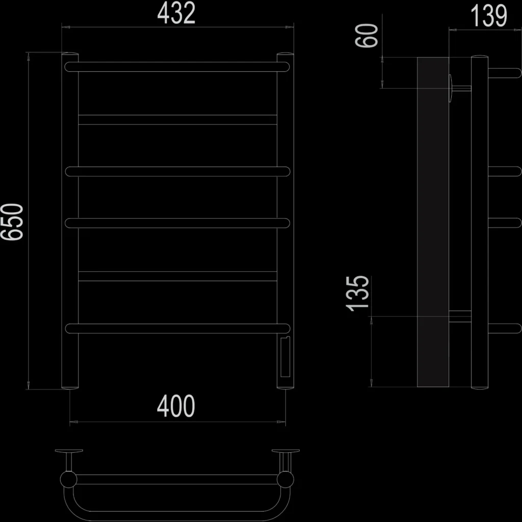 Полотенцесушитель электрический Terminus TREND ЭПС Евромикс Электро П6 400×650, 650 мм высотой, 432 мм шириной, 6 перекладин, нижнее подключение, хромированный
