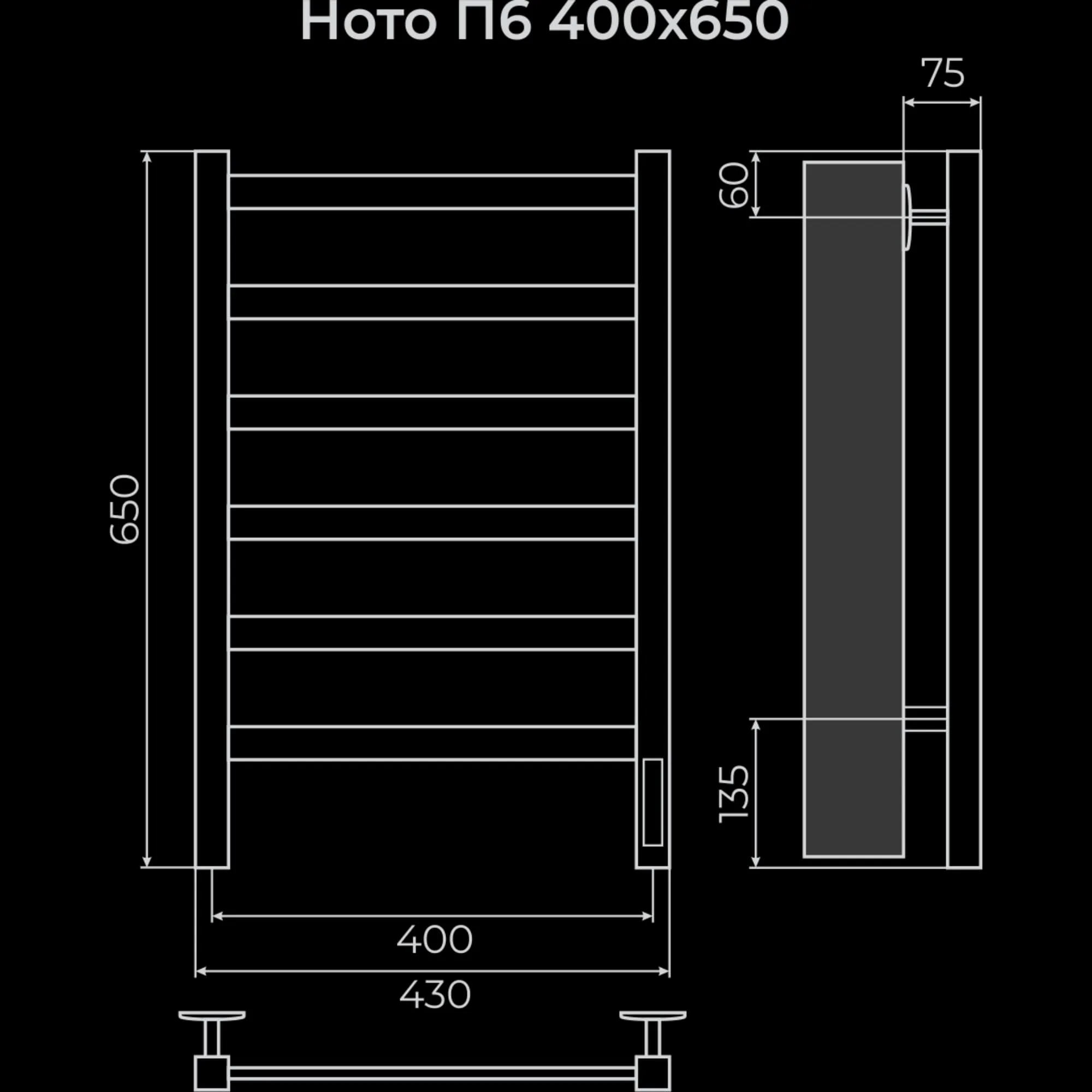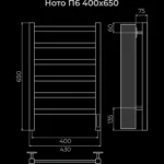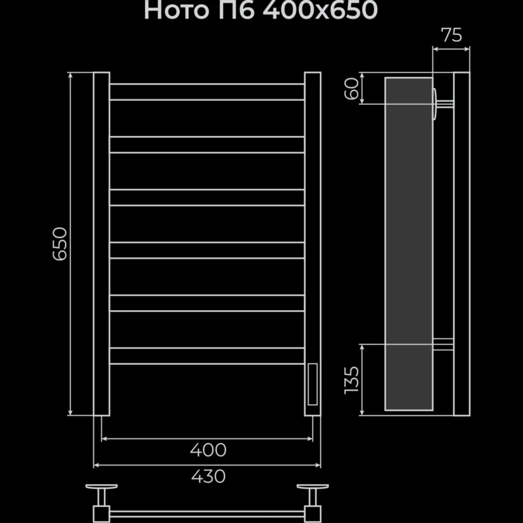 Полотенцесушитель электрический Terminus TREND ЭПС Ното Электро П6 400×650, 650 мм высотой, 430 мм шириной, 6 перекладин, нижнее подключение, хромированный