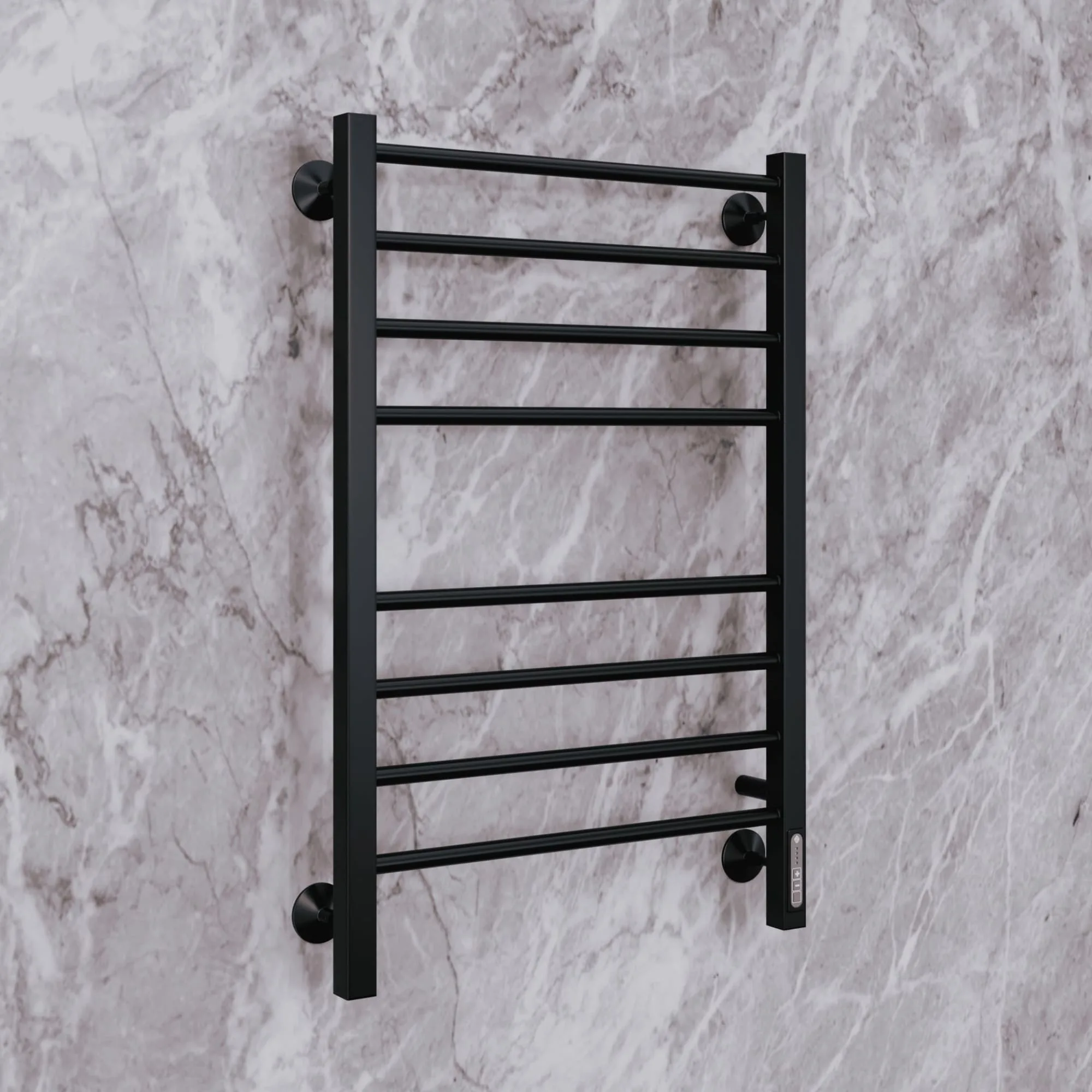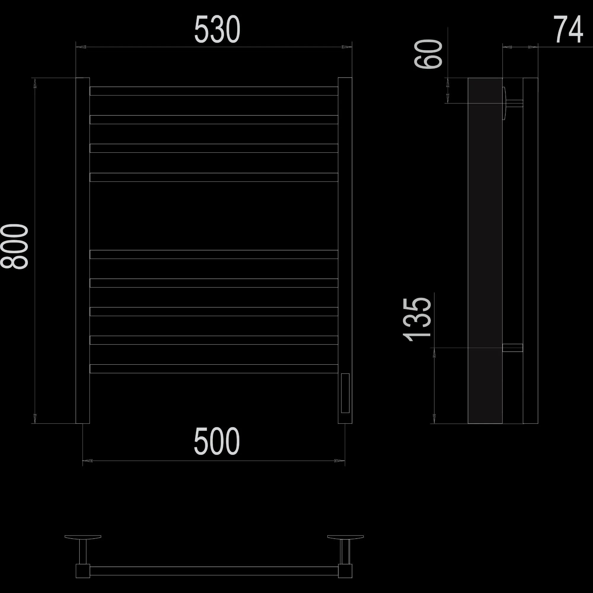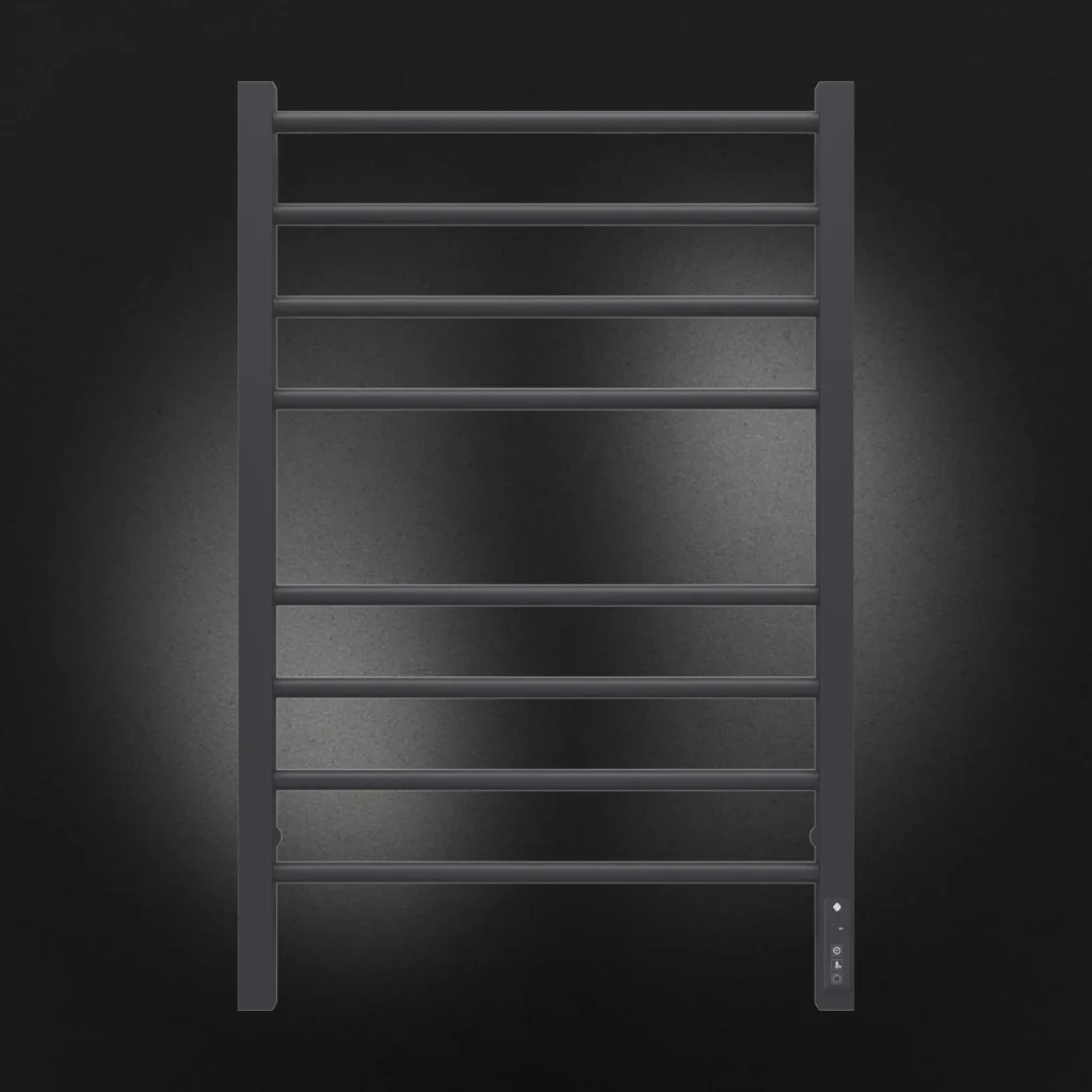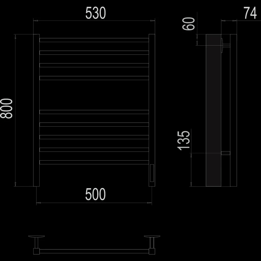 Полотенцесушитель электрический Terminus TREND ЭПС Сицилия Электро КС П8 500×800 чёрный муар, 800 мм высотой, 530 мм шириной, 8 перекладин, нижнее подключение, чёрный муар