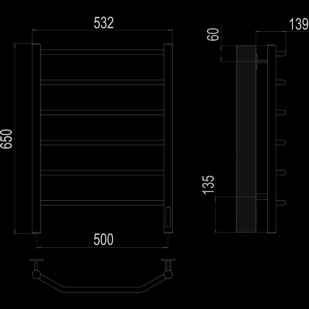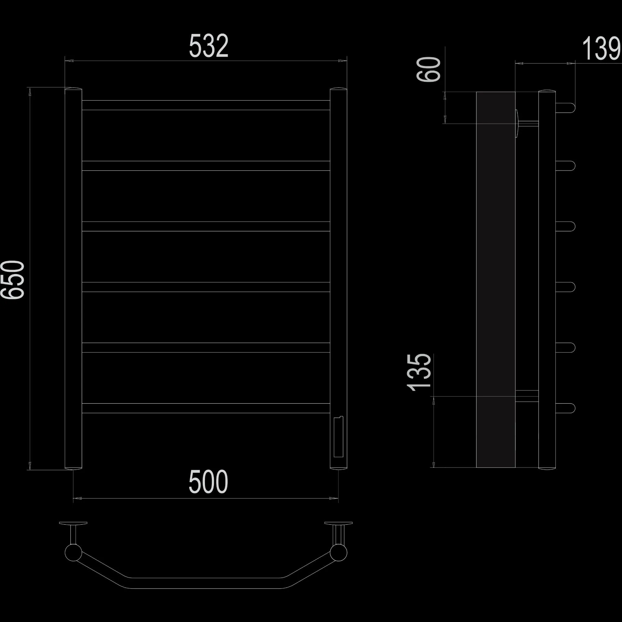 Полотенцесушитель электрический Terminus TREND ЭПС Виктория Электро П6 500×650, 650 мм высотой, 532 мм шириной, 6 перекладин, нижнее подключение, хромированный