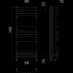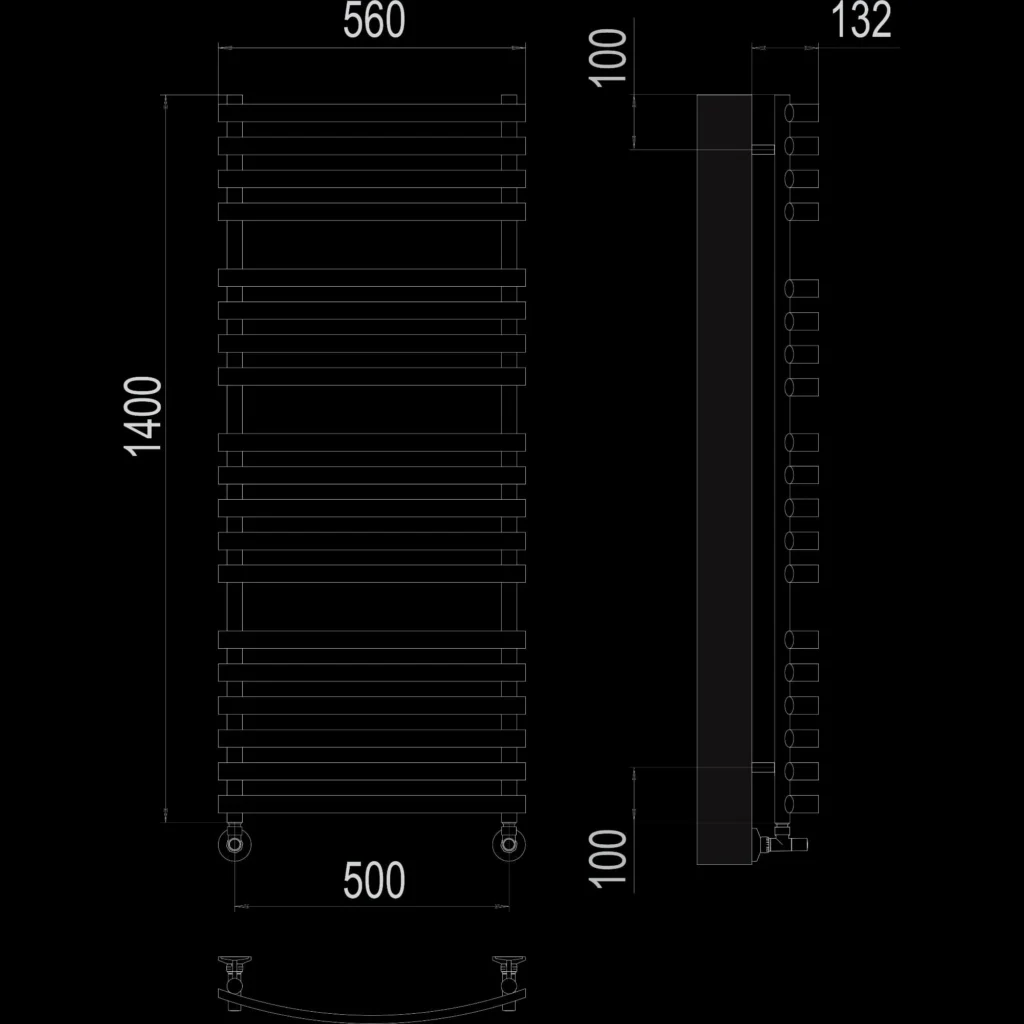 Полотенцесушитель водяной Terminus IDEAL+ Капри П19 500×1400, 1400 мм высотой, 560 мм шириной, 19 перекладин, нижнее подключение 1/2 дюйма, хромированный