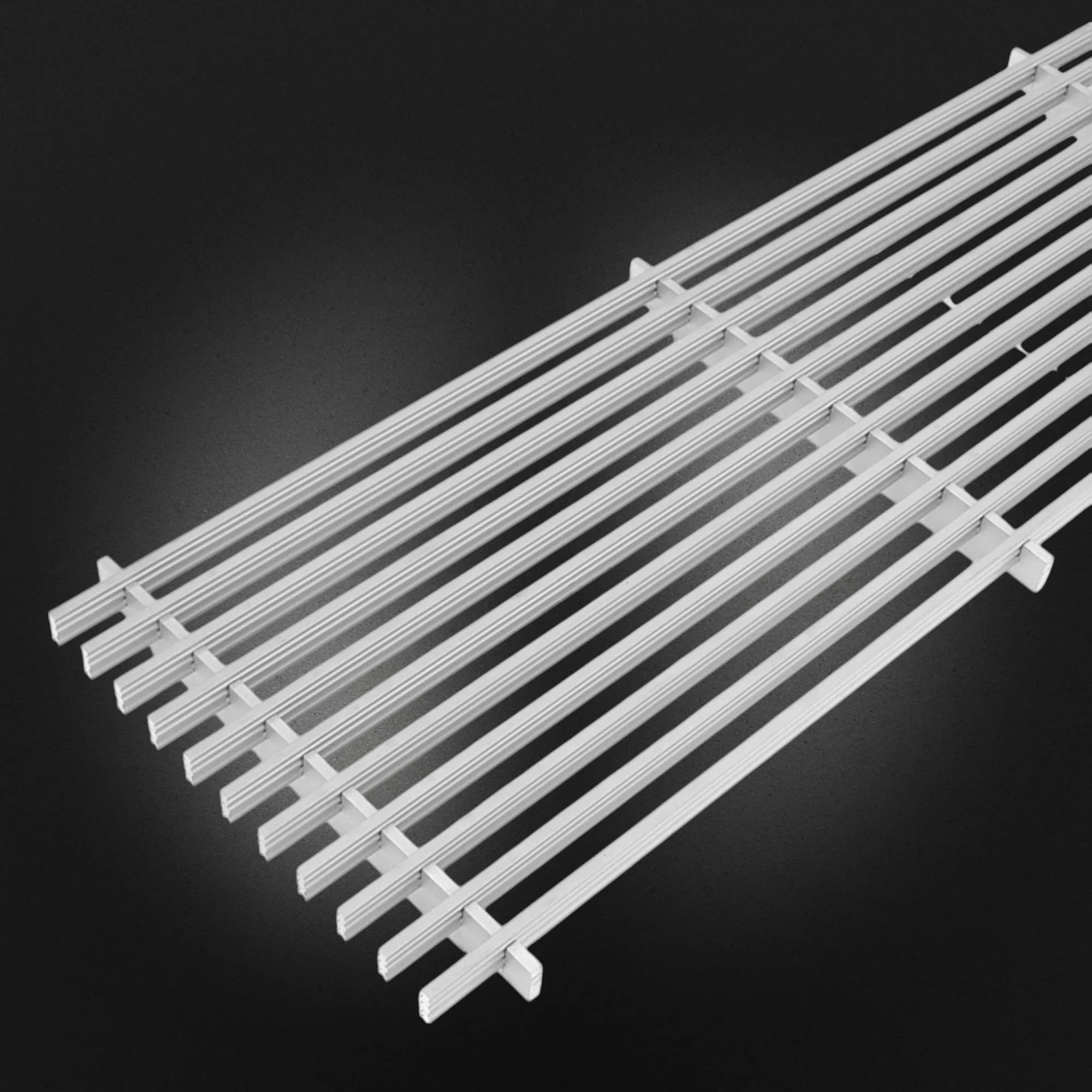 Продольная решётка для моделей внутрипольных конвекторов Itermic ITT, ITTB, ITTZ и ITTBZ сочетает в себе стильный дизайн и практичность. Она предназначена для защиты отопительного прибора, обеспечения оптимальной циркуляции воздуха и гармоничного дополнения интерьера.