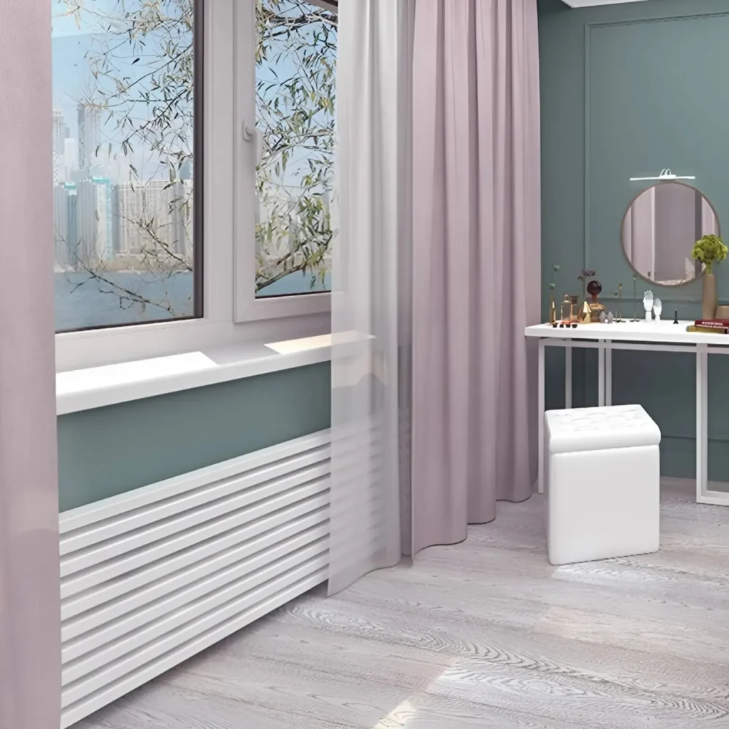 • Горизонтальная конструкция: Идеально подходит для размещения под окнами или вдоль стен, что способствует равномерному обогреву и экономии пространства.