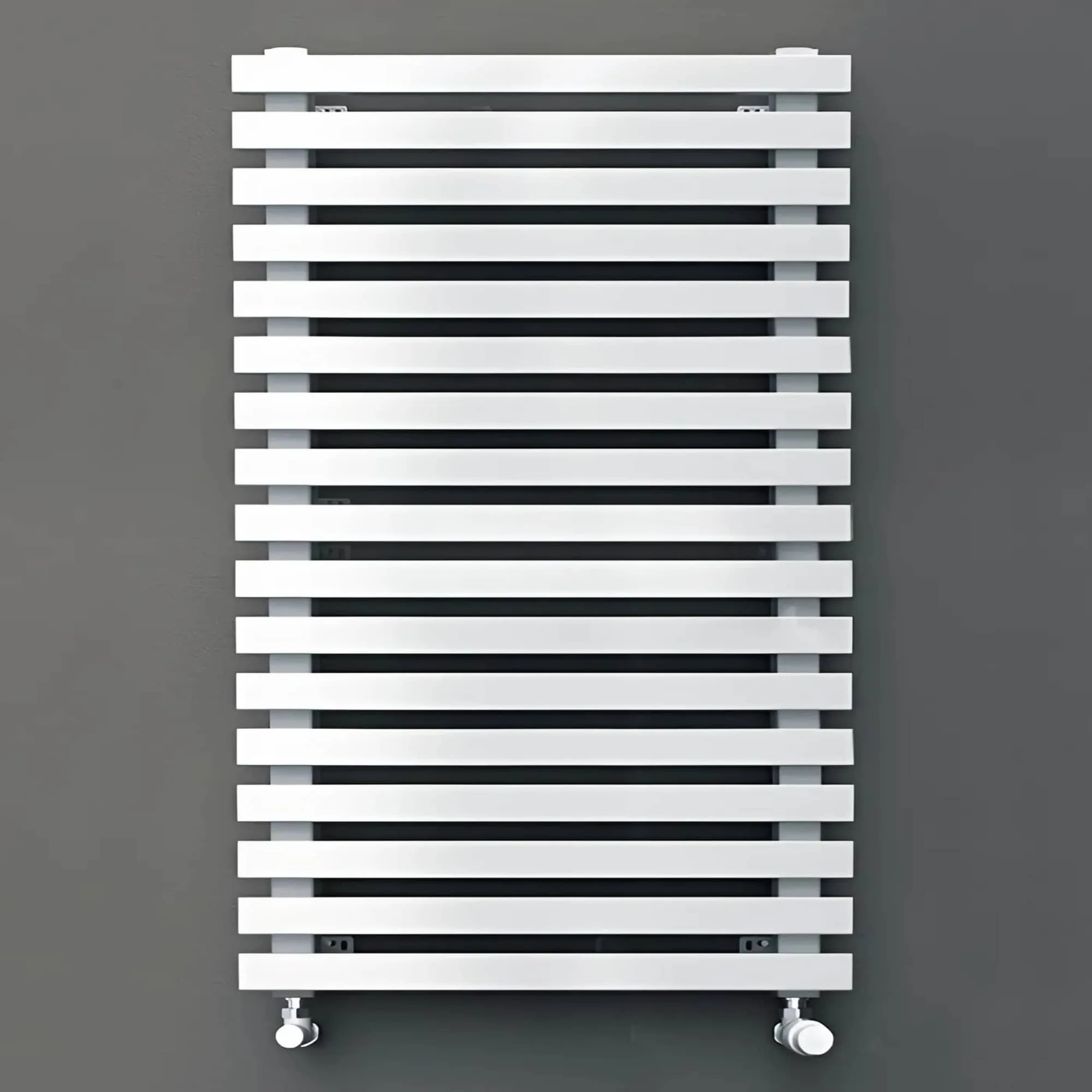 Трубчатый радиатор KZTO QUADRUM 30 H, 481 мм высотой, 1313 мм шириной, однотрубный, 12 секций, нижнее правое подключение 1/2 дюйма, белый глянцевый (RAL 9016G)