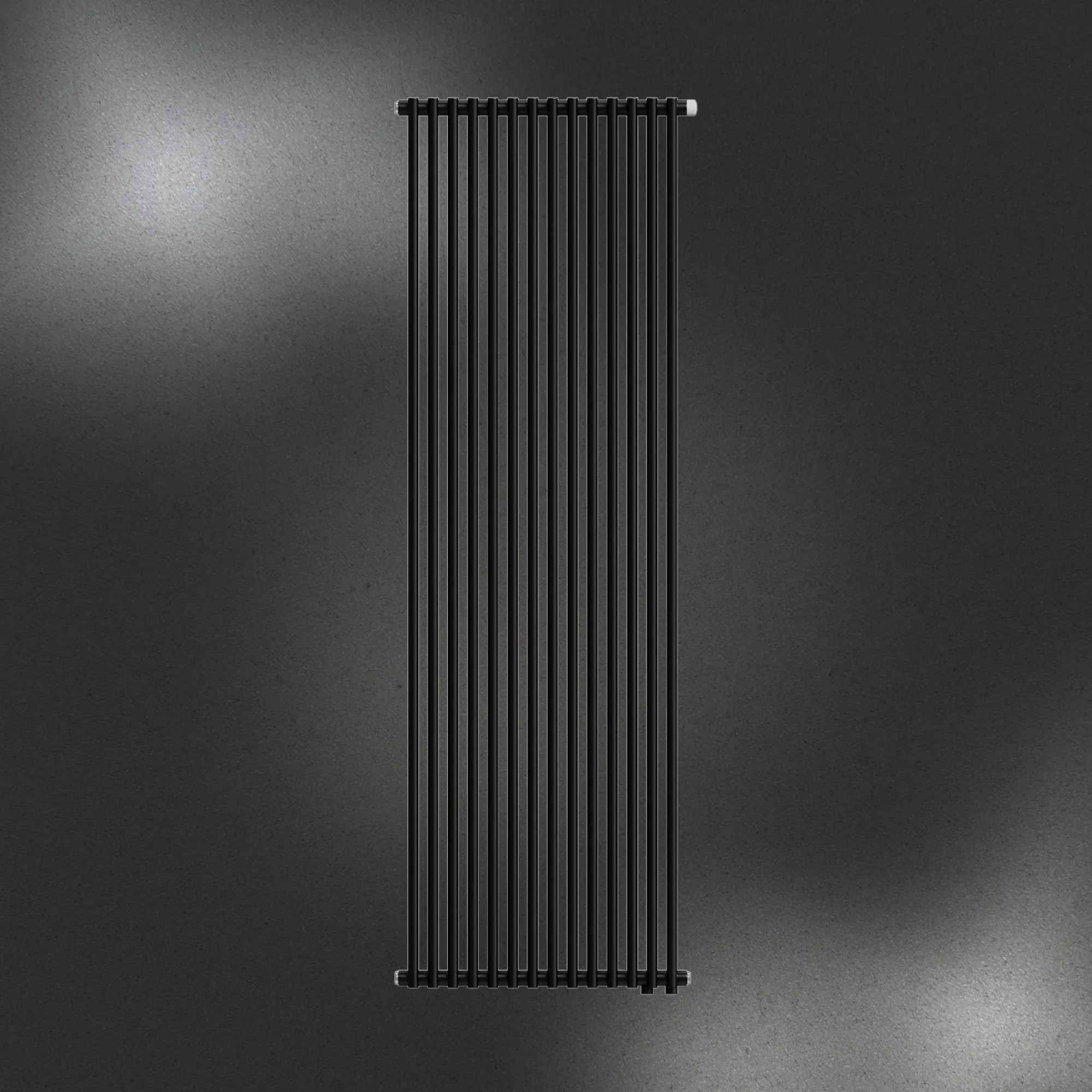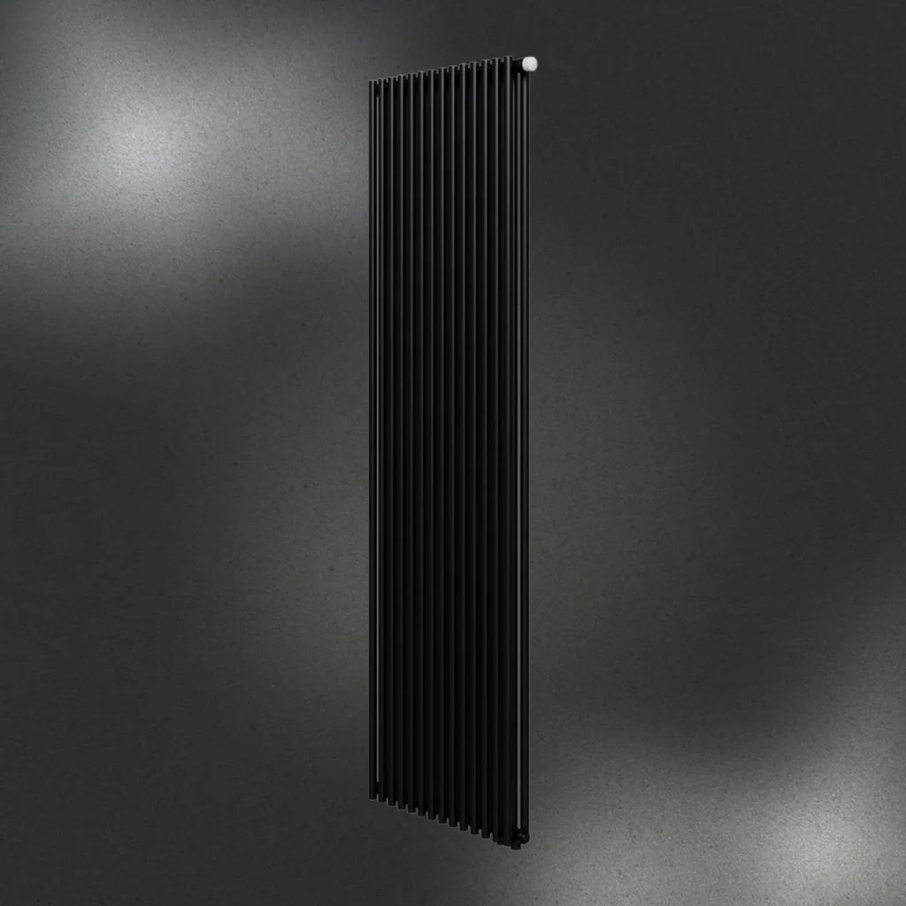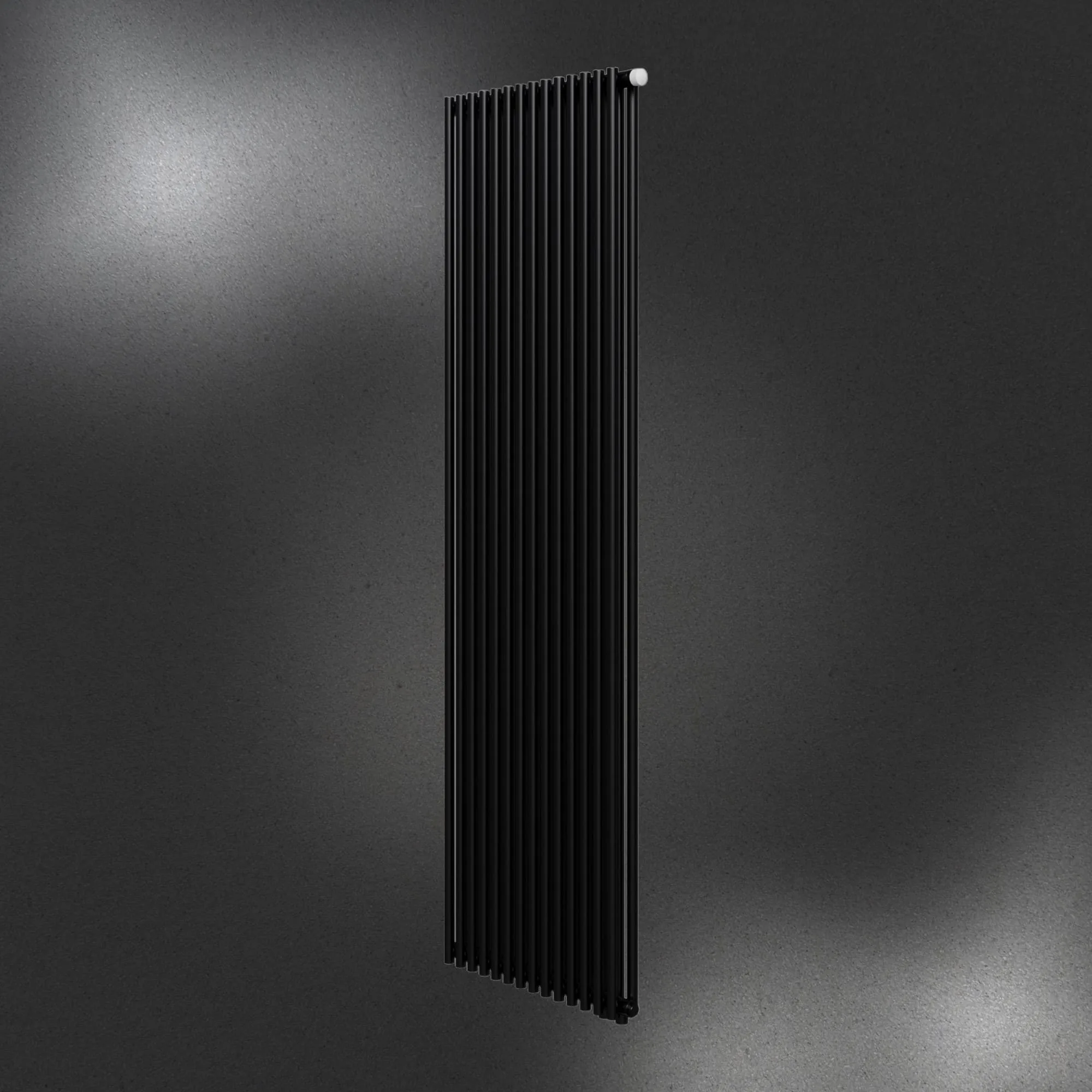 Вертикальный трубчатый радиатор Royal Thermo Shift R22, 1800 мм высотой, 420 мм шириной, двухтрубный, 10 секций, боковое подключение 1/2 дюйма, чёрный матовый (RAL 9005M)